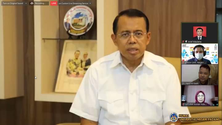 Gubernur Sumatera Barat H. Mahyeldi Ansharullah, S.P dalam arahannya menyampaikan, bahwa pemerintah propinsi sumatera Barat menyambut baik dan bangga atas pelaksanaan virtual job fair ini, ini merupakan gagasan cerdas yang dilaksanakan UNP dalam menyikapi situasi dan kondisi pandemi Covid 19 ini, UNP mampu menyedikan informasi dan memberikan kemudahan kemudahan kepada para pencari tenaga kerja melalui virtual job fair ini, kita berharap kepada perguruan tinggi lainnya juga bisa memberikan terobosan dalam menjawab persoalan persoalan kehidupan berbangsa. Disamping itu H. Mahyeldi juga menyampaikan ucapan apresiasi dan terimakasih kepada Menteri Ketenagakerjaan RI “Kita berharap dengan kehadiran ibu Mentri Ida Fauziyah pada kegiatan ini akan lebih meningkatkan peran perguruan tinggi dalam menjawab dan menyambungkan informasi informasi antara dunia kerja dengan para pencara kerja” kami ucapkan terimakasih dan apresiasi kepada ibu menaker RI dan UNP khususnya yang telah melakukan terobosan cerdas dalam menyikapi dan menjawab lonjakan pengangguran di indonesia, tentunya Sumatera Barat Khususnya. Tambah H. Maheyldi”